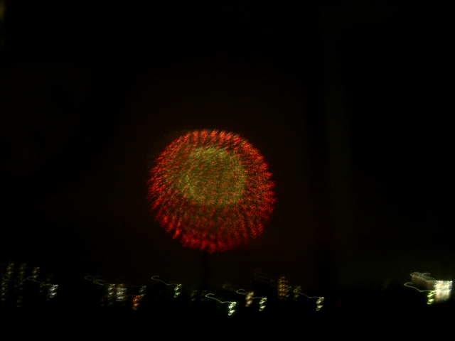 今日は部屋から花火を見た。花火大会会場で見る迫力の花火もいいが